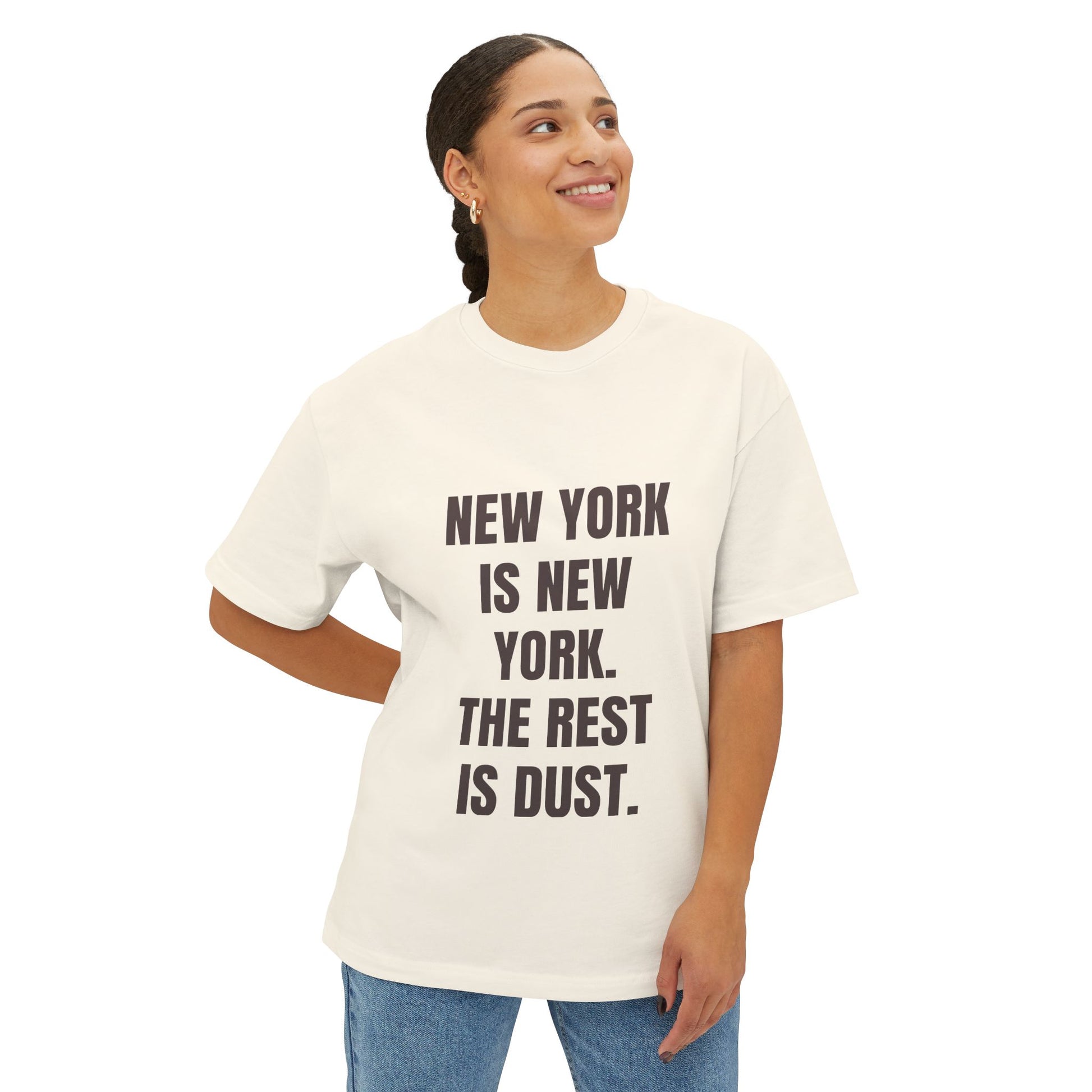 A bold statement tee that captures the essence of New York. Featuring the phrase “New York is New York and the rest is dust” in strong block lettering, this shirt blends minimalist streetwear design with NYC pride. Perfect for those who love NYC and want to show off their city pride. Ideal for urban fashion enthusiasts, tourists, and New York natives. Relevant for city trips, sightseeing, casual outings, and streetwear looks.
